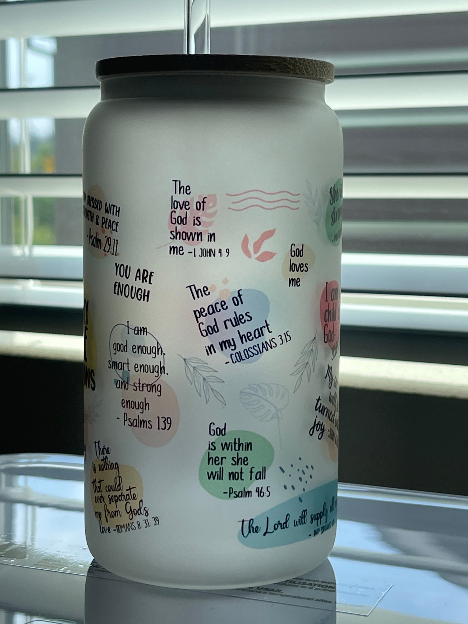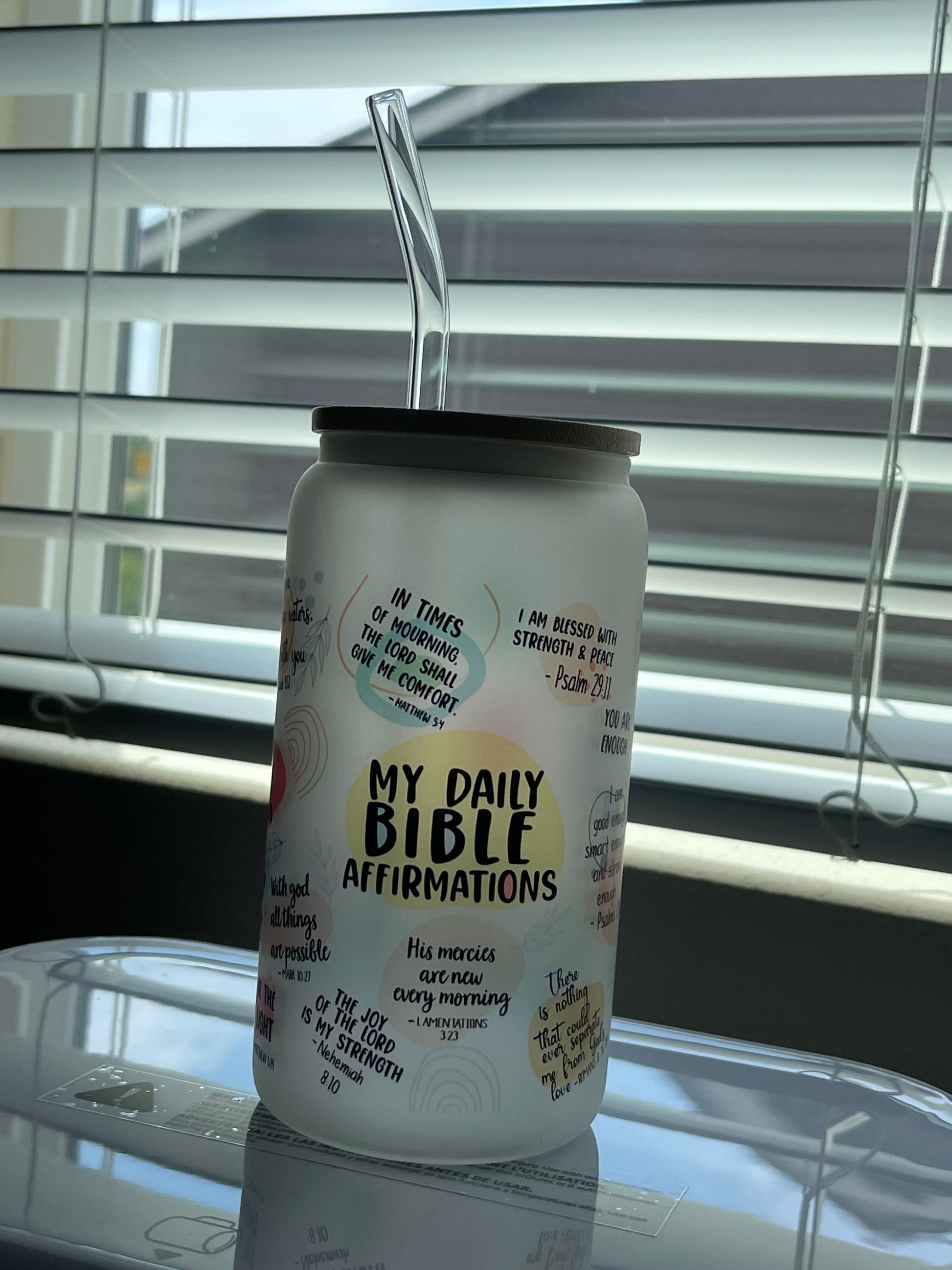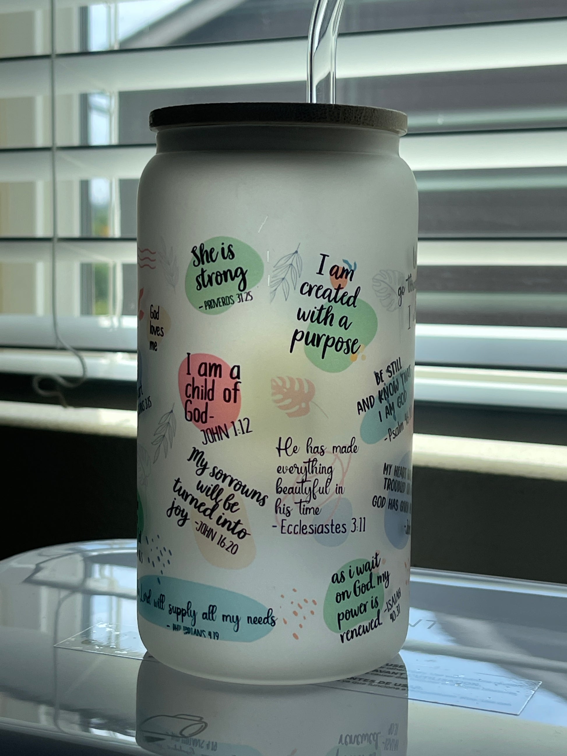 16 oz frosty Libby glass cup. 2 glass straws one that is bent and one that is straight ♥️