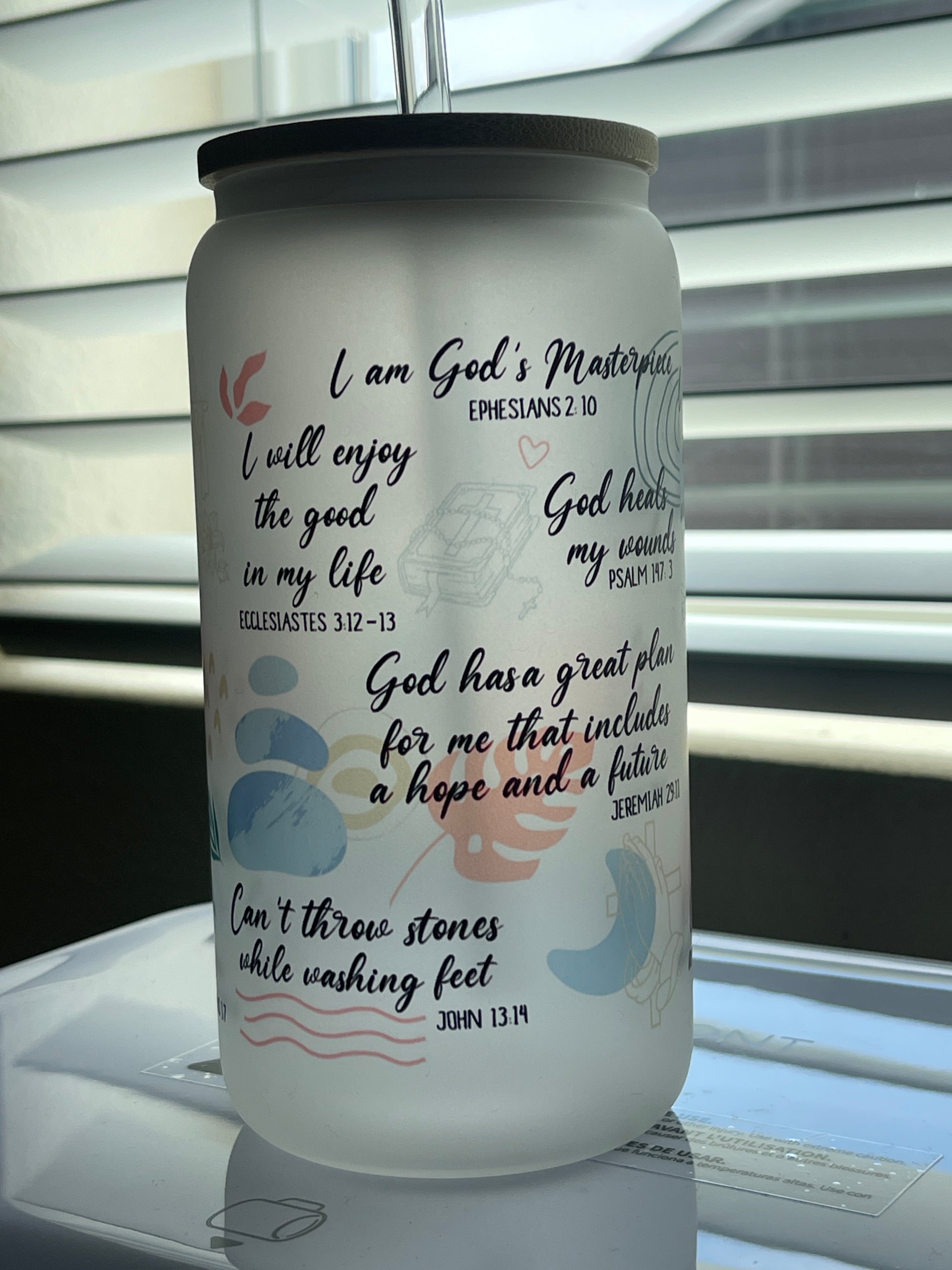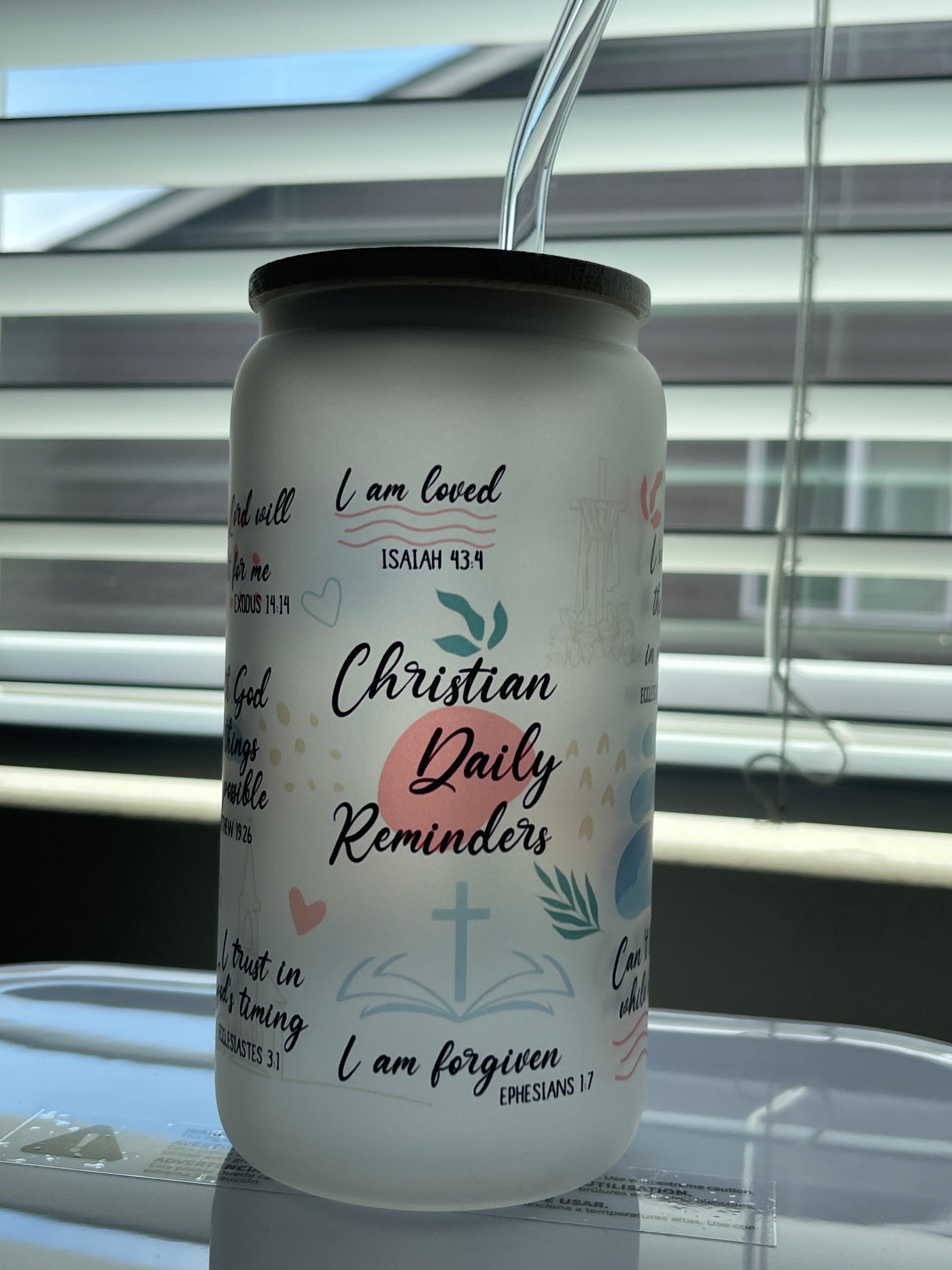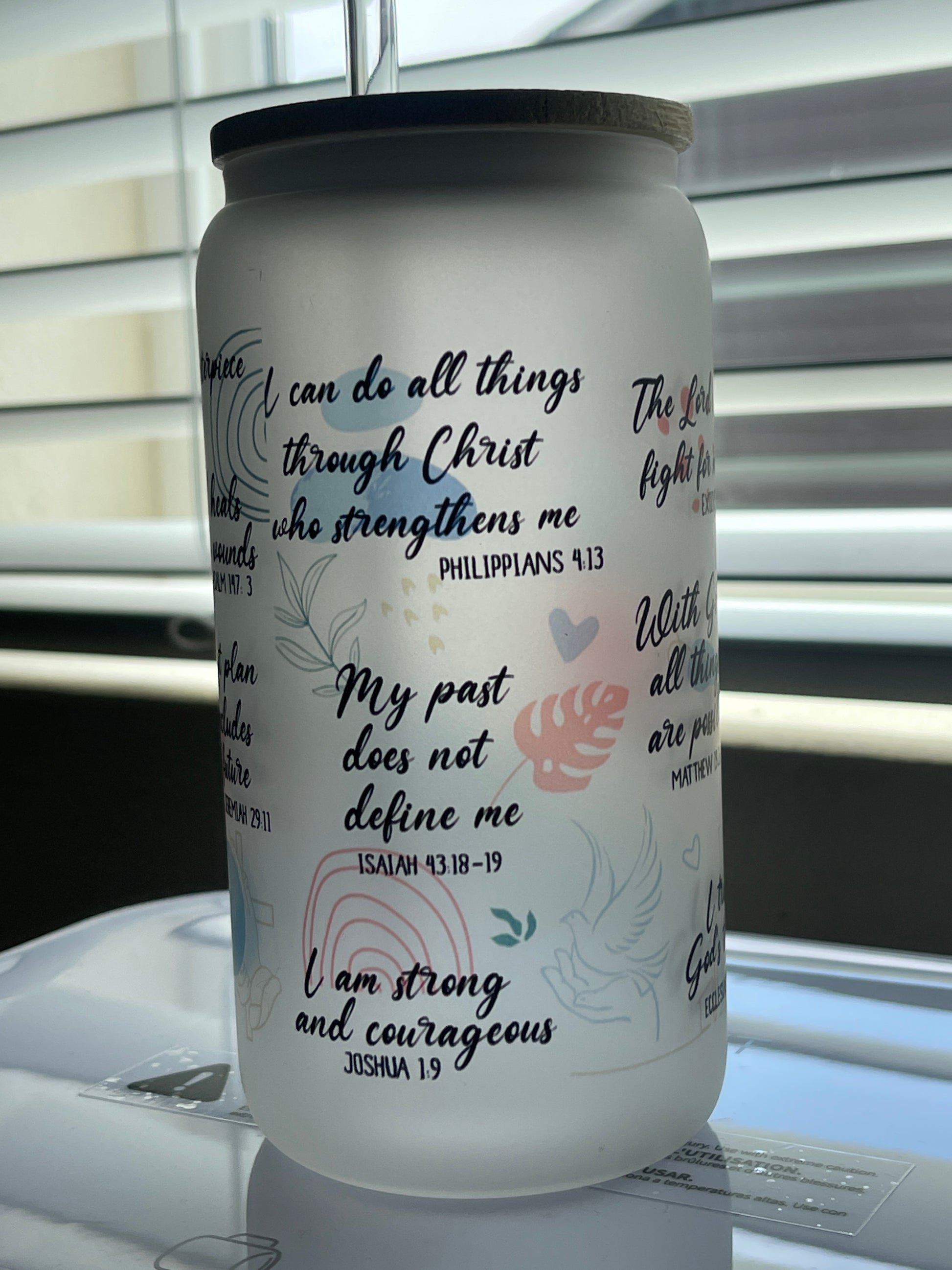 16 oz frosty Libby glass cup. 2 glass straws one that is bent and one that is straight ♥️
